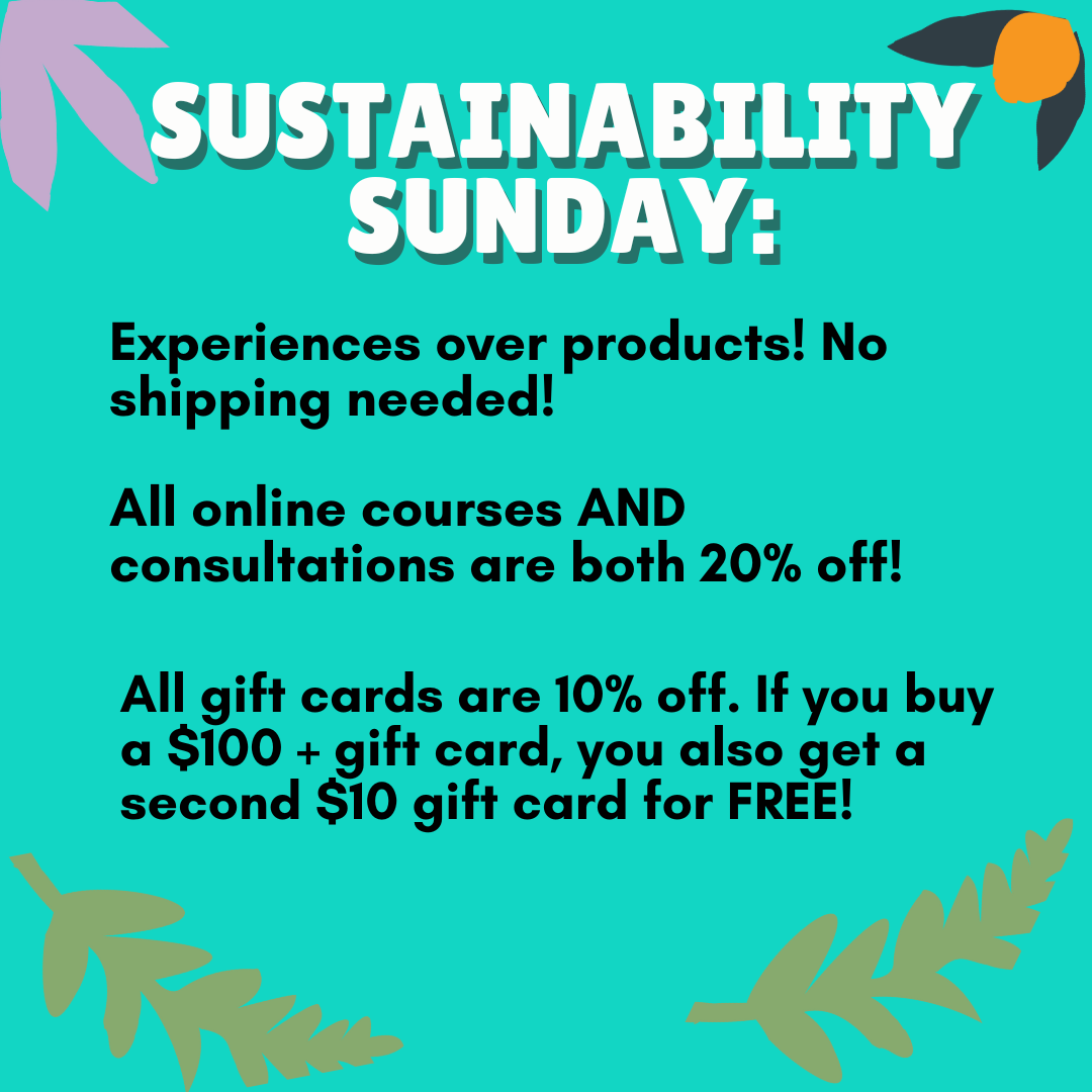 All courses and consultations are 20% off- use code SUSTAINABILITYSUNDAY to get the discount.