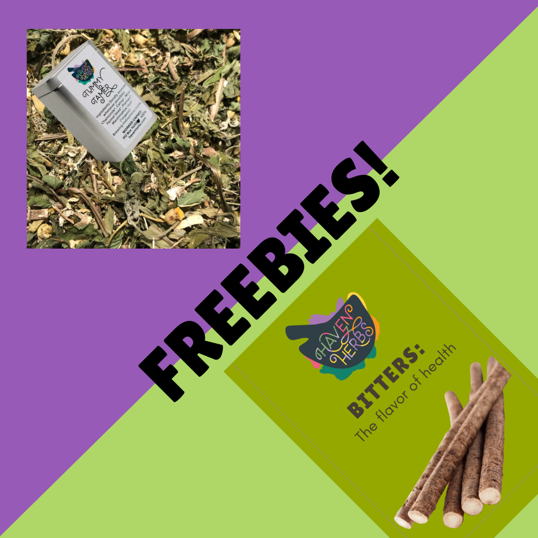 November's freebie is a sample of our Tummy Tamer Tea! Spend $50 or more to get this sample! We also offer FREE shipping to orders $75 and over (of Haven Herbs products)!