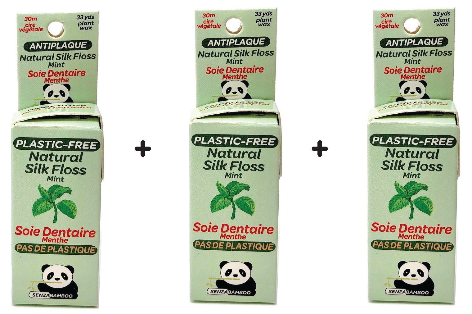 3 packs of 100%-Plastic Free Silk Dental Floss (3 flavor options)