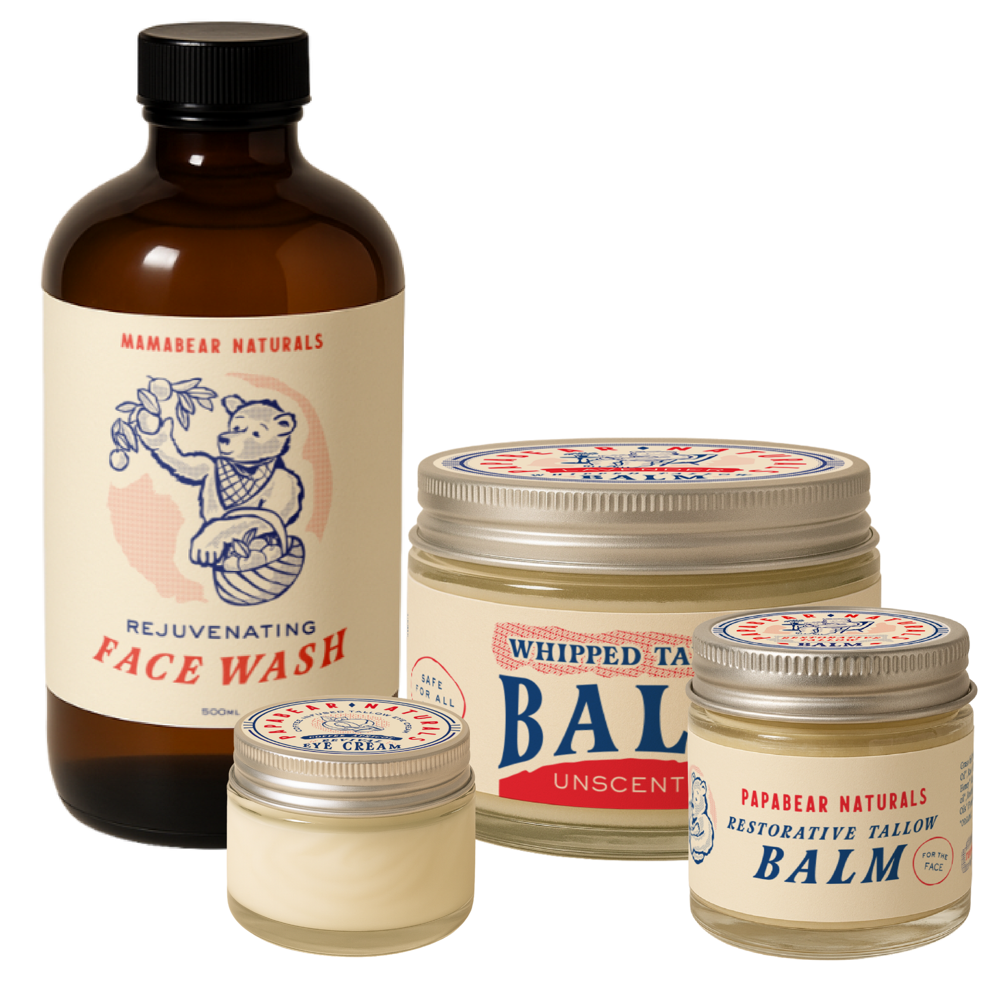 From sunrise to lights-out, this clean routine actually works: Rejuvenating Face Wash, Revival Eye Cream, Restorative Tallow Balm, and Whipped Tallow Balm.