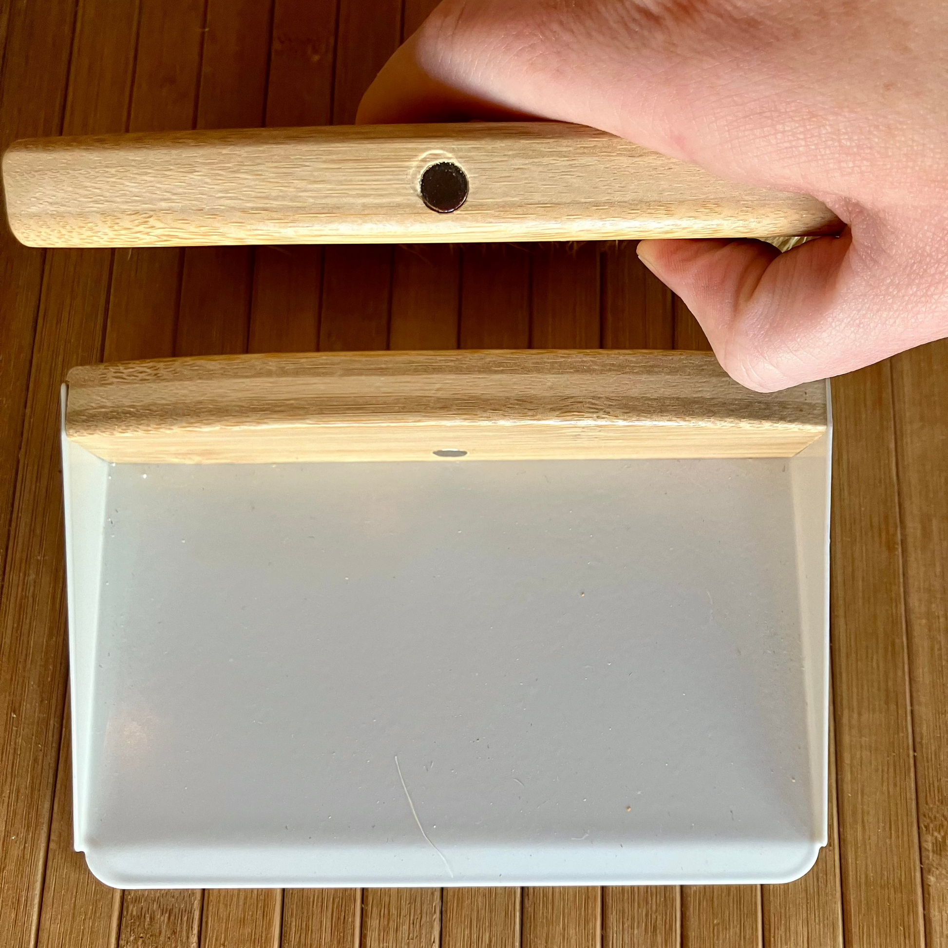 Our Bamboo Desk Dust Pan is perfect for small messes, this eco-friendly dust pan is crafted from sustainable bamboo, ensuring durability and a sleek, natural look. Its small size makes it ideal for dry kitchen clean ups, desks, countertops, and other tight spaces, offering a convenient and stylish solution for quick cleanups.