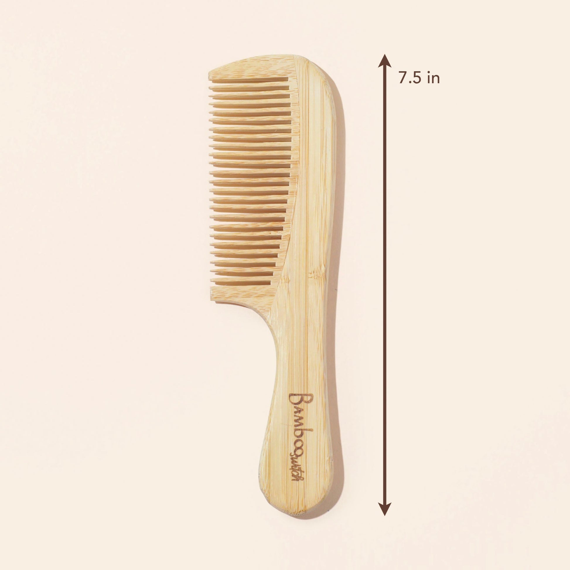 Bamboo Wide Tooth Comb with Handle | Pointed Tips