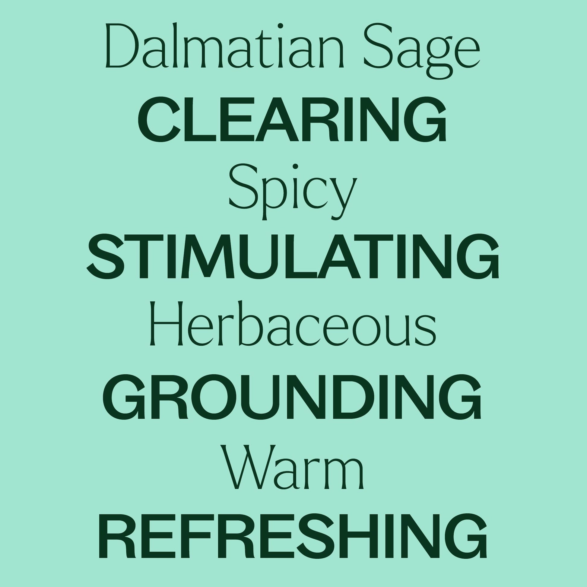 Breathe in the cleansing, warm, herbaceous aroma of Dalmatian Sage Essential Oil. This powerful oil is both stimulating to the senses while also helping ease stress and nervousness. And when mental and emotional exhaustion seems imminent, reach for Sage. Like so many herbaceous and spicy essential oils, Sage is also helpful for soothing tension, relieving digestion issues, or calming cramps.