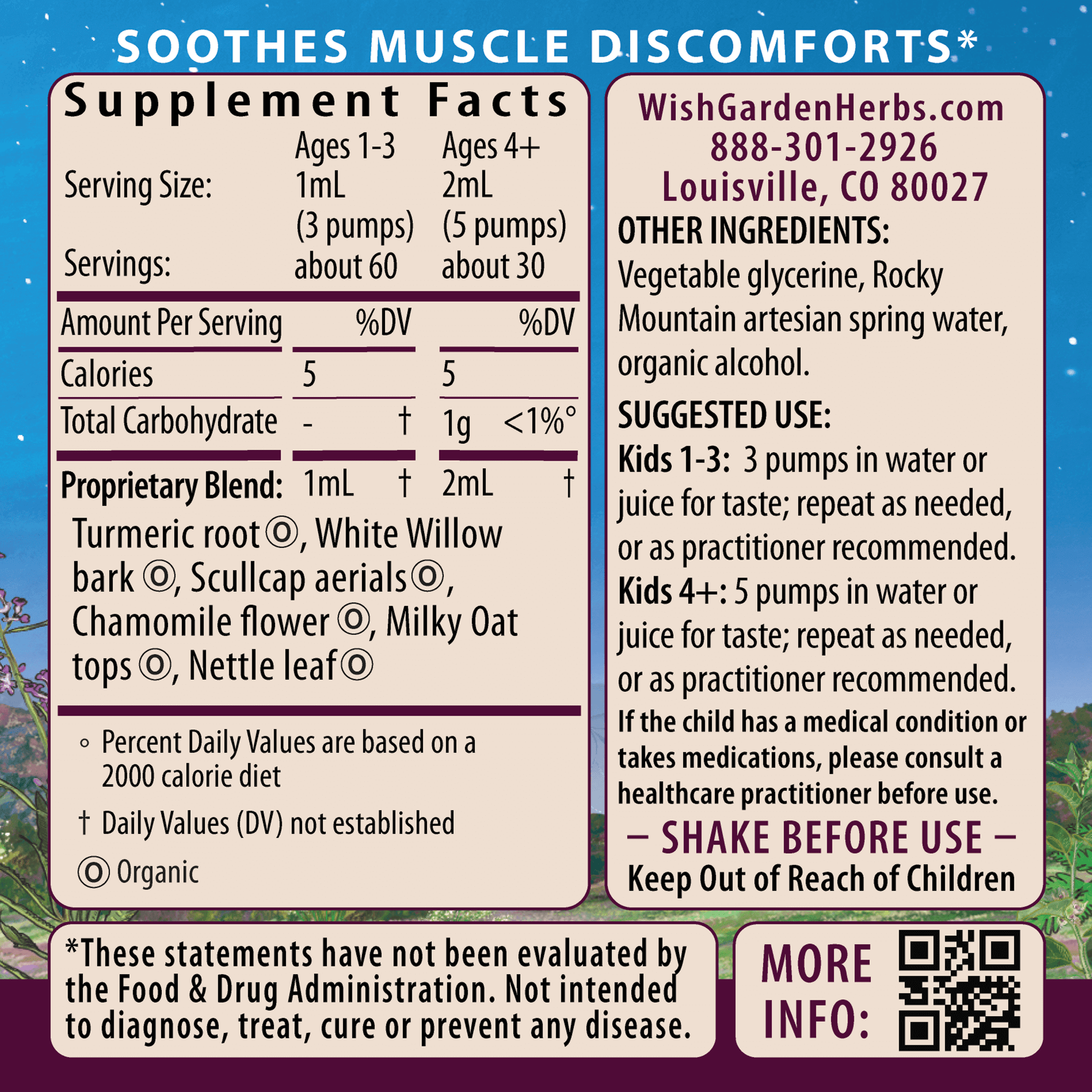 Sometimes being a kid can be uncomfortable business. Our Growing Pains Ache Away remedy is a gentle but effective herbal formula designed for active children. Turmeric supports a healthy inflammatory response, Willow bark supports relief from occasional aches, herbs like Chamomile, Milky Oats and Scullcap help to calm and comfort while the mineral content in Nettle supports nourishment of growing, active bodies.