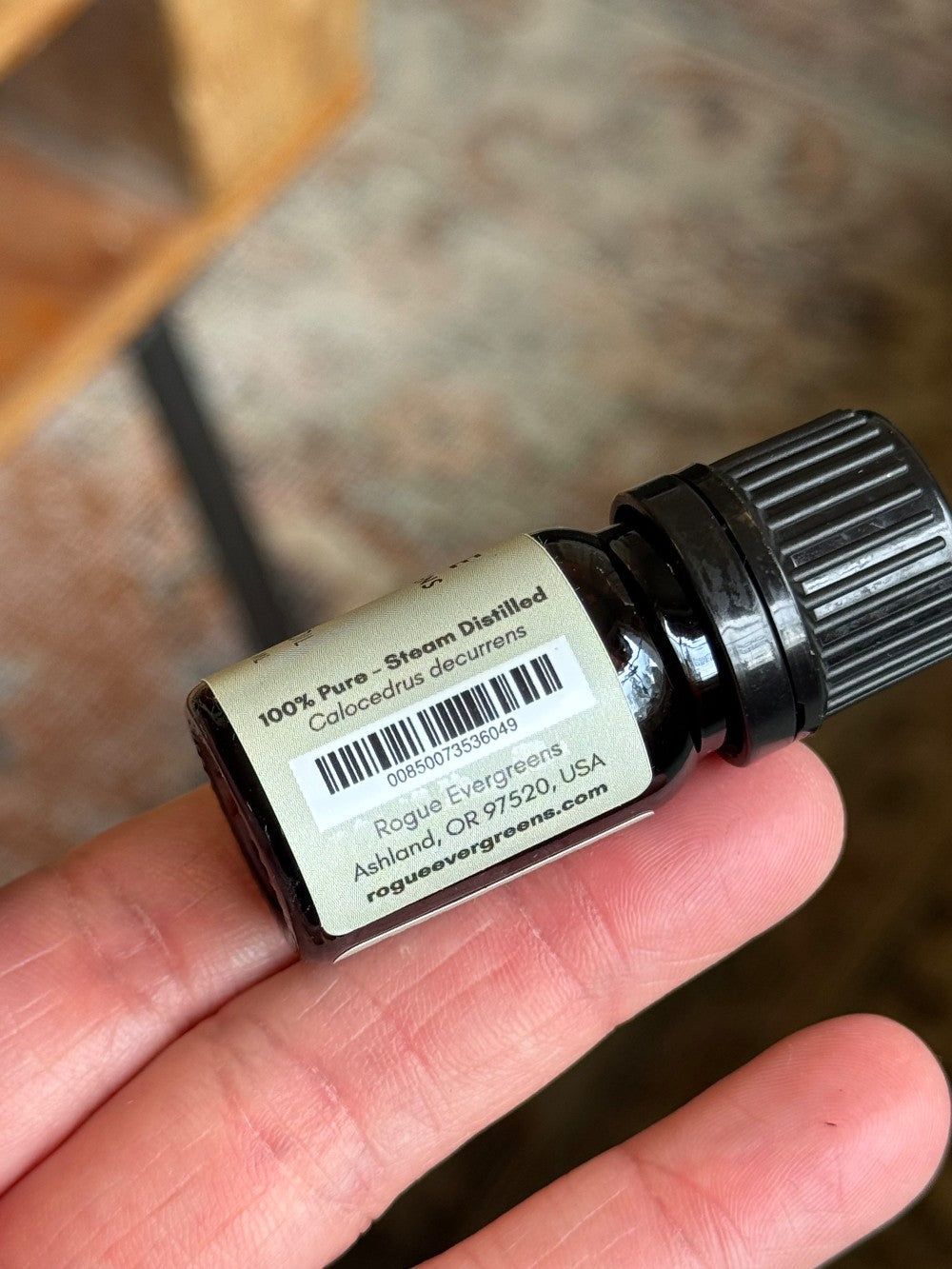 Single-species, small-batch Incense Cedar essential oil from Oregon. Deep and mildly spicy with notes of crushed ginger, vanilla bean, and fresh sawdust, finishing warm with a chai-like impression. Bottled without additives, true to the species.
