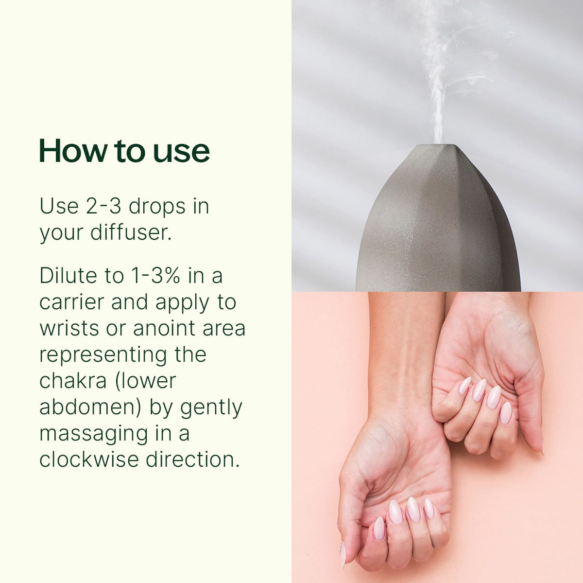 The 2nd (sacral) chakra is the seat of creation, sensation, feelings, and relationships. Located in the lower abdomen, this chakra is where we connect to our sense of self-gratification and emotional security. In balance, we experience the healthy emotions of pleasure, gratification, intimacy, desire, and passion. These feelings nurture and nourish our sense of creativity, connection, growth, and change. This blend is made with the 100% pure, undiluted essential oils and extracts of Coriander Seed, Bourbon Geranium, Sweet Orange, and Jasmine Absolute. It is a lushly layered and smooth floral scent that continues to unfold as it reaches the senses.