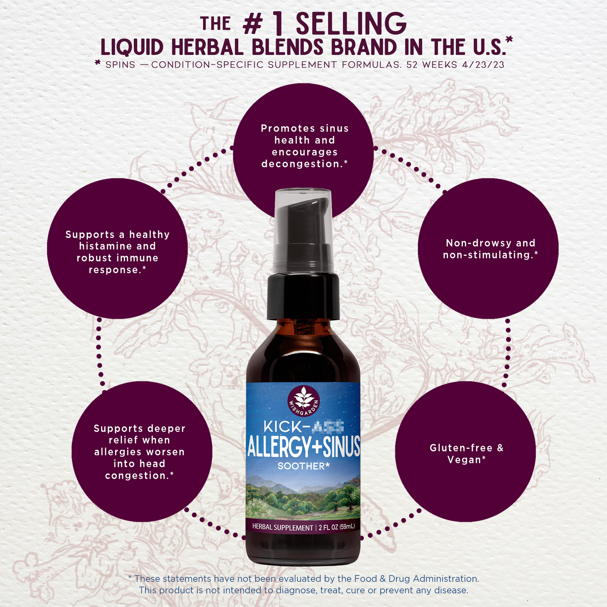 Yerba Santa leaf (Eriodictyon spp. (californicum, angustifolium, crassifolium, trichocalyx)), organic Echinacea purpurea root (Echinacea purpurea), organic Nettle leaf (Urtica dioica), Yerba Mansa root (Anemopsis californica), Elderflower (Sambucus nigra), organic Horseradish root (Fresh) (Armoracia rusticana), organic Orange peel (Citrus sinensis), Vegetable glycerine, Rocky Mountain artesian spring water & organic gluten-free alcohol.
