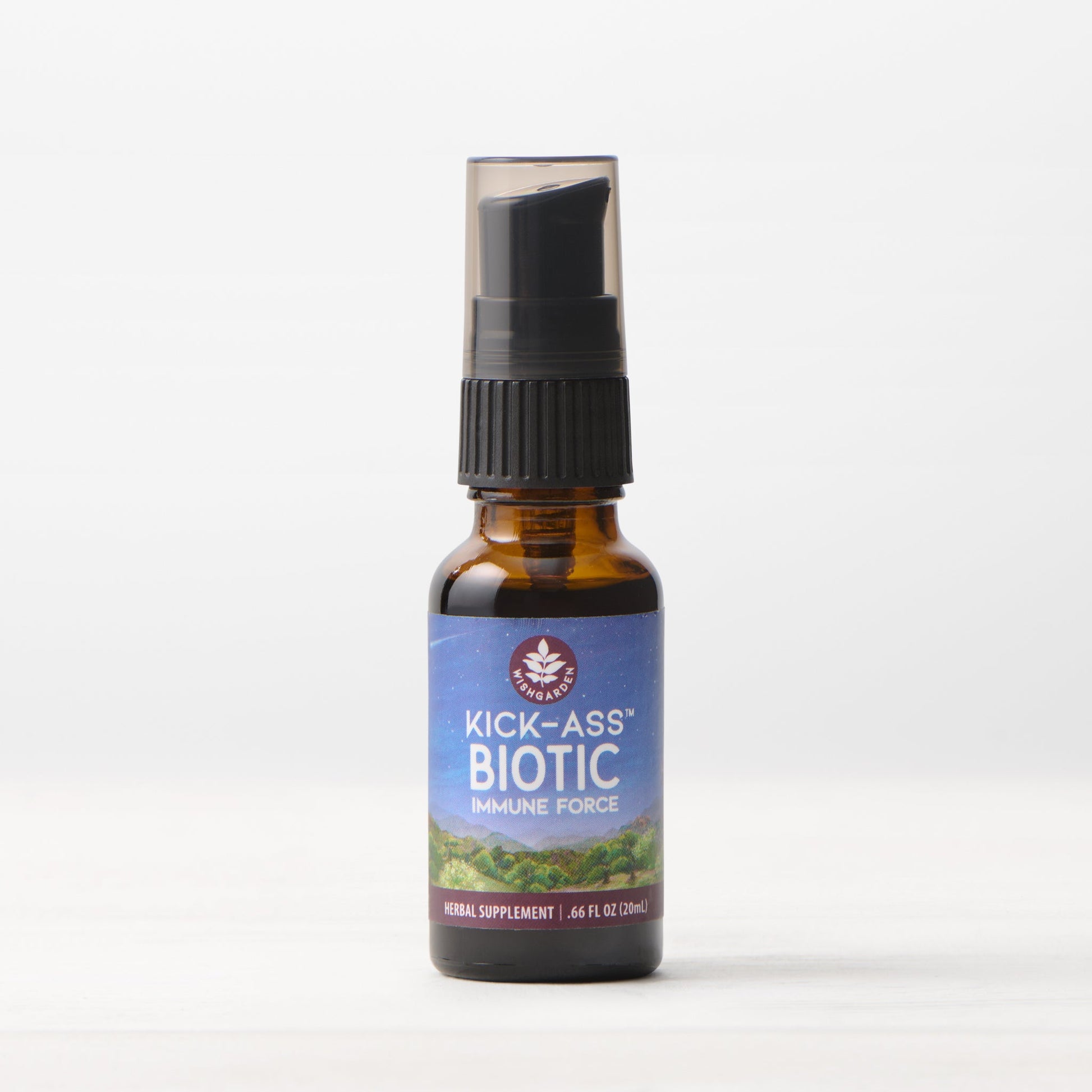 Kick-Ass Biotic: (Usnea lichen, Bee Propolis, Goldenseal root, Baptisia root, Boneset aerials, Red Root, Hops strobiles, Myrrh gum, Echinacea angustifolia root, Rocky Mountain artesian spring water, organic gluten-free alcohol & vegetable glycerine)