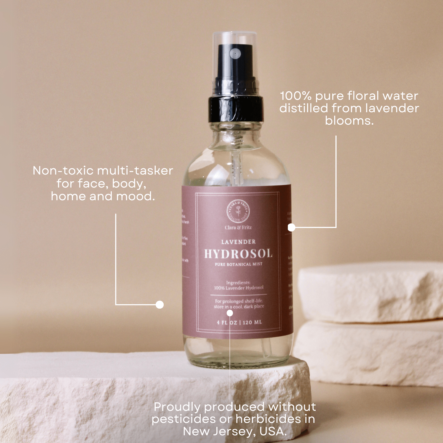 Hydrosol, also known as floral water, is a by-product of the steam distillation process used to make lavender essential oil. It's non-toxic and can be used in so many ways; we're always discovering more each season.
