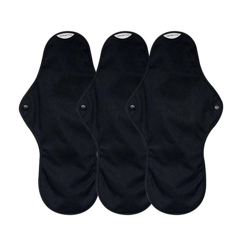 Organic Reusable Pads - 3 Overnight Pads in Black