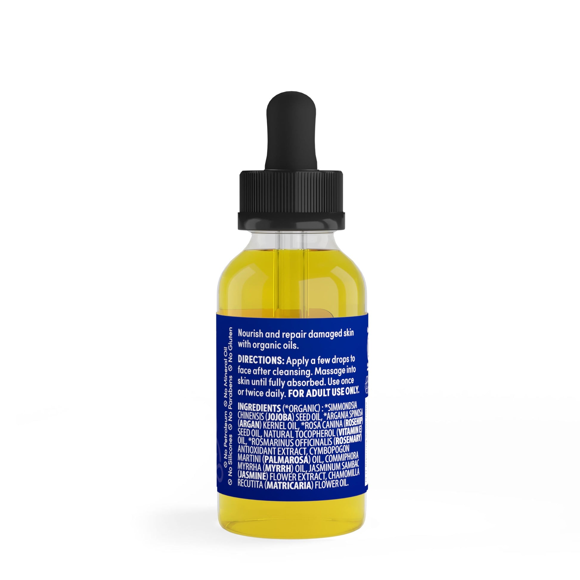 *Olea Europaea (Olive) Fruit Oil, *Simmondsia Chinensis (Jojoba) Seed Oil, *Rosa Canina (Rosehip) Seed Oil, *Argania Spinosa (Argan) Seed Oil, Natural Tocopherol (Vitamin E) Oil, Rosmarinus Officinalis (Rosemary) Antioxidant Oil, Cymbopogon Martini (Palmarosa) Oil, Commiphora Myrrha (Myrrh) Resin, Jasminum Sambac (Jasmine) Flower Extract, Matricaria Chamomilla (Blue Chamomile) Oil.
