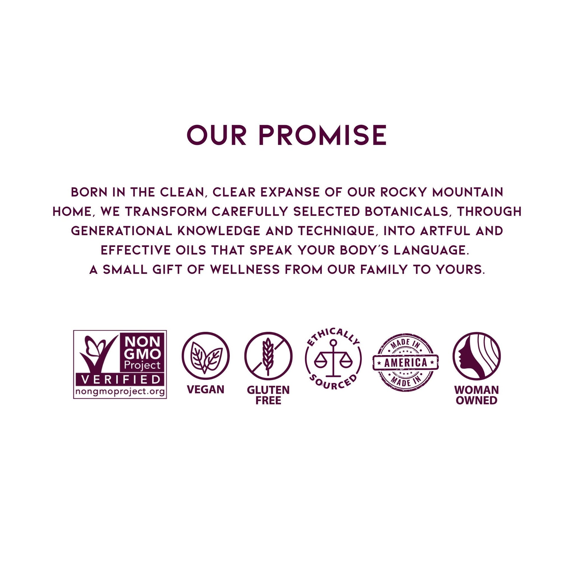 This mighty trio of St. John’s wort, arnica and calendula has a long history as an herbal skincare blend. Sun-kissed, mountain grown botanicals are infused in our premium oil blend to access their rich, nourishing constituents. This deeply hydrating Restorative Oil replenishes the skin and is a must have for active lifestyles. A proprietary base of jojoba and camelina oils provides deep hydration and smooth absorption without clogging pores or leaving an oily residue.