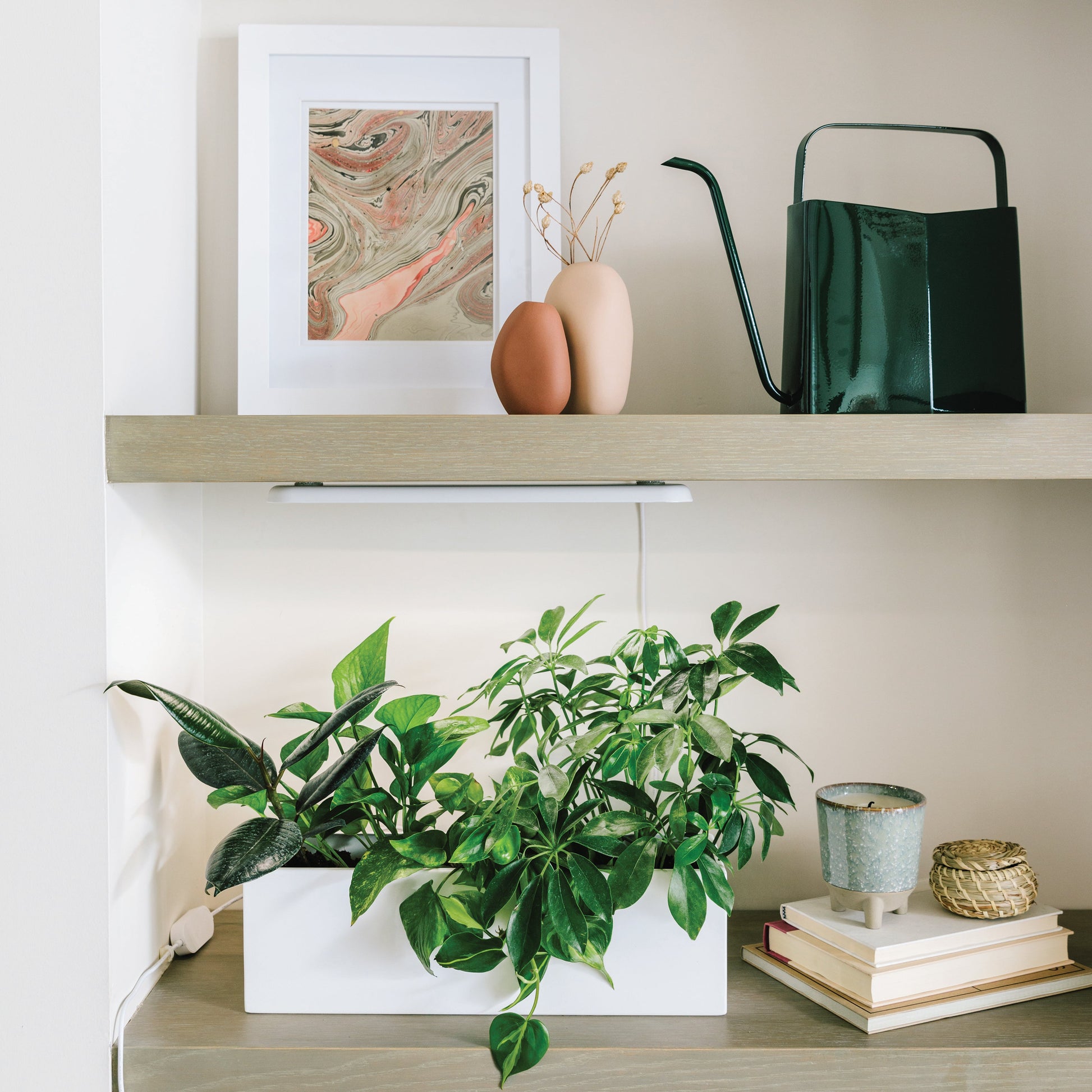 Plants will thrive anywhere in your home with our sleek Growbar. A low-profile flush-mount metal fixture, transform any shelf or bookcase into the perfect place for plants.