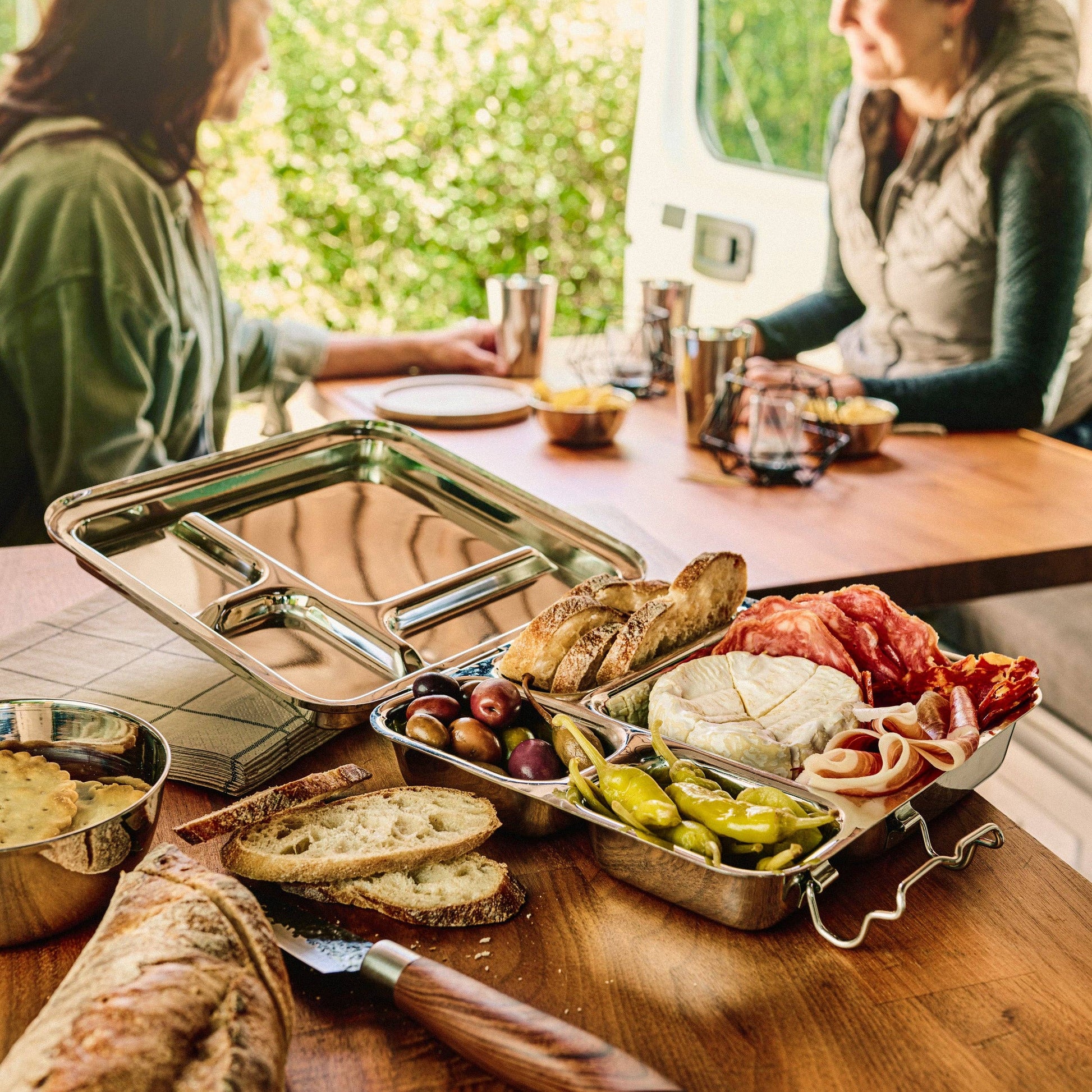 - 4-Section Bento Box: Features one container with four deep, divided sections and a secure clasp lid — perfect for lunches, snacks, entertaining, or travel.