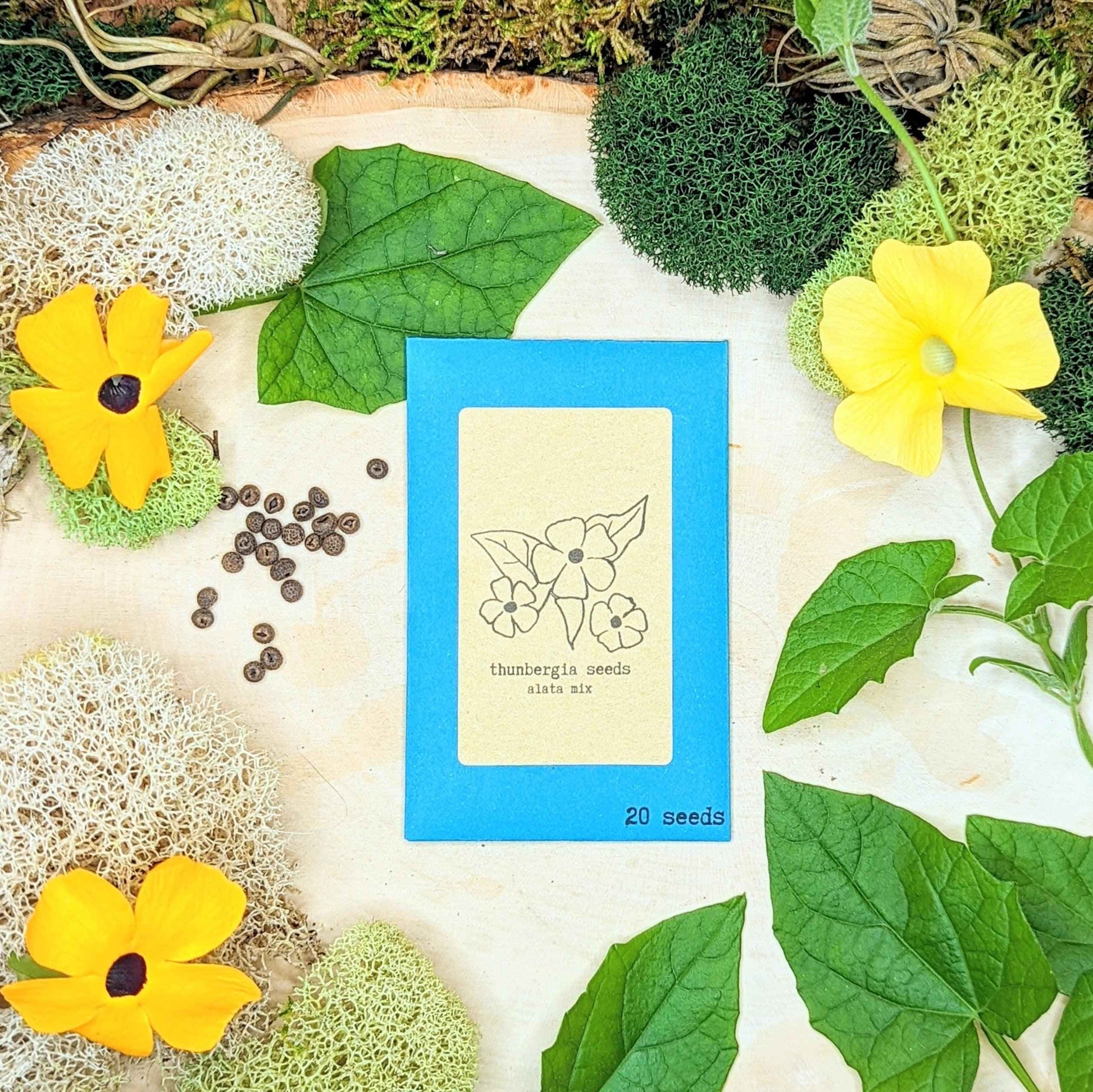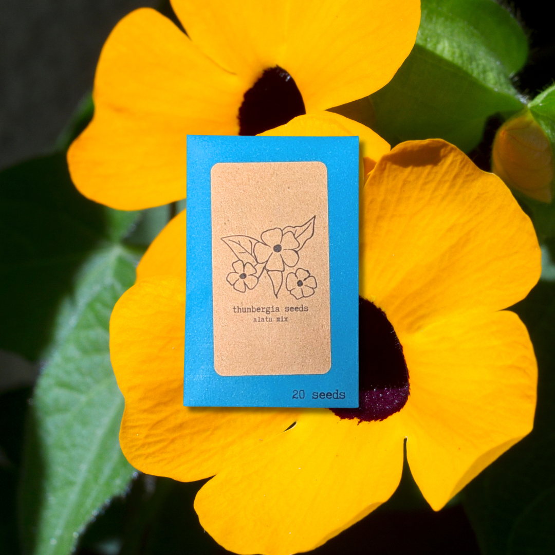 Sprout some fun with our Thunbergia, aka Black Eyed Susan, Seeds! These little seeds grow into large trailing plants with iconic bright yellow flowers with "black eyes". No green thumb required. Get your green on today!