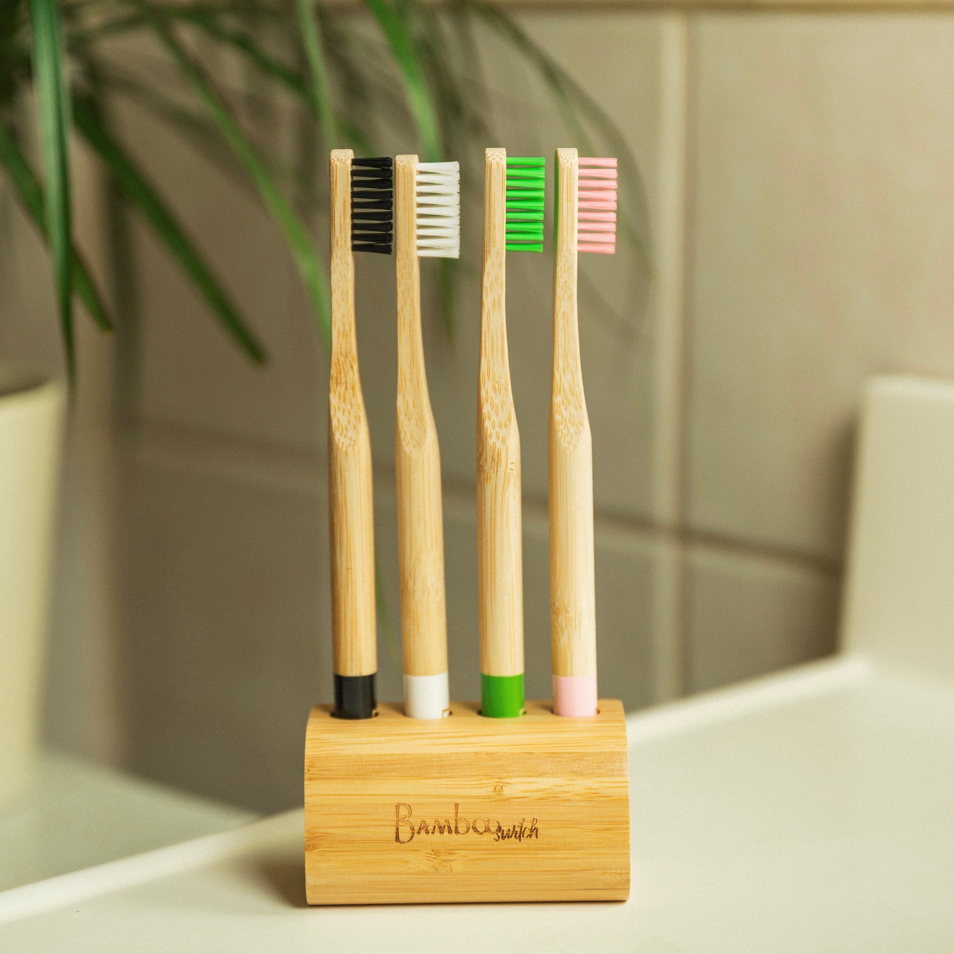 Our Bamboo Toothbrush Stand is a stylish and eco-friendly accessory for organizing your toothbrushes, made from sustainable bamboo with slots for multiple brushes.