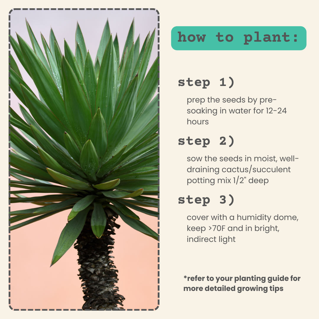 Yucca Baccata, also known as the Blue Stem Yucca, is a charming succulent that grows tall like a little tree—kind of like a dracaena! These easy-to-grow seeds bring a splash of desert style into your home, perfect for adding a wild, blue-green touch to your indoor garden. Watch as your Yucca sprouts and stretches upward, making your space feel fresh and unique. Whether you’re a plant newbie or a green thumb, these seeds are a fun way to grow your own desert beauty!